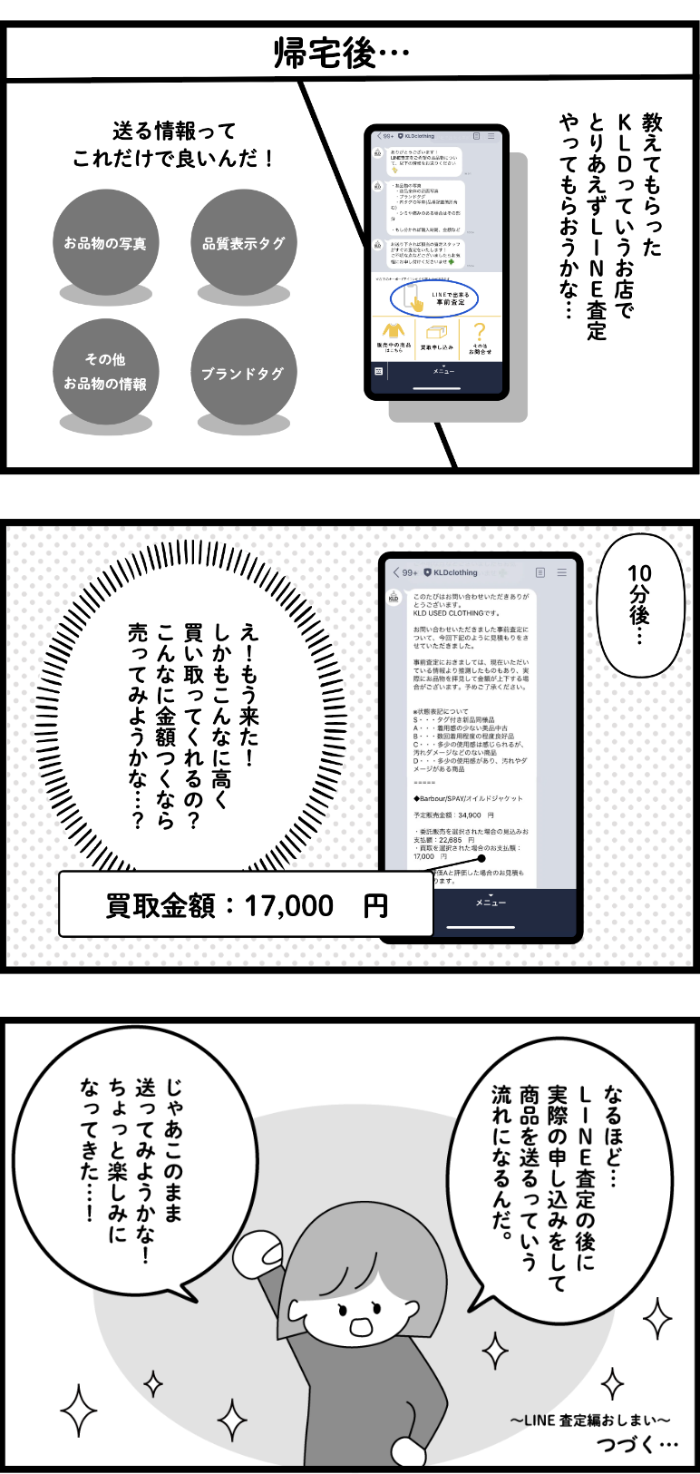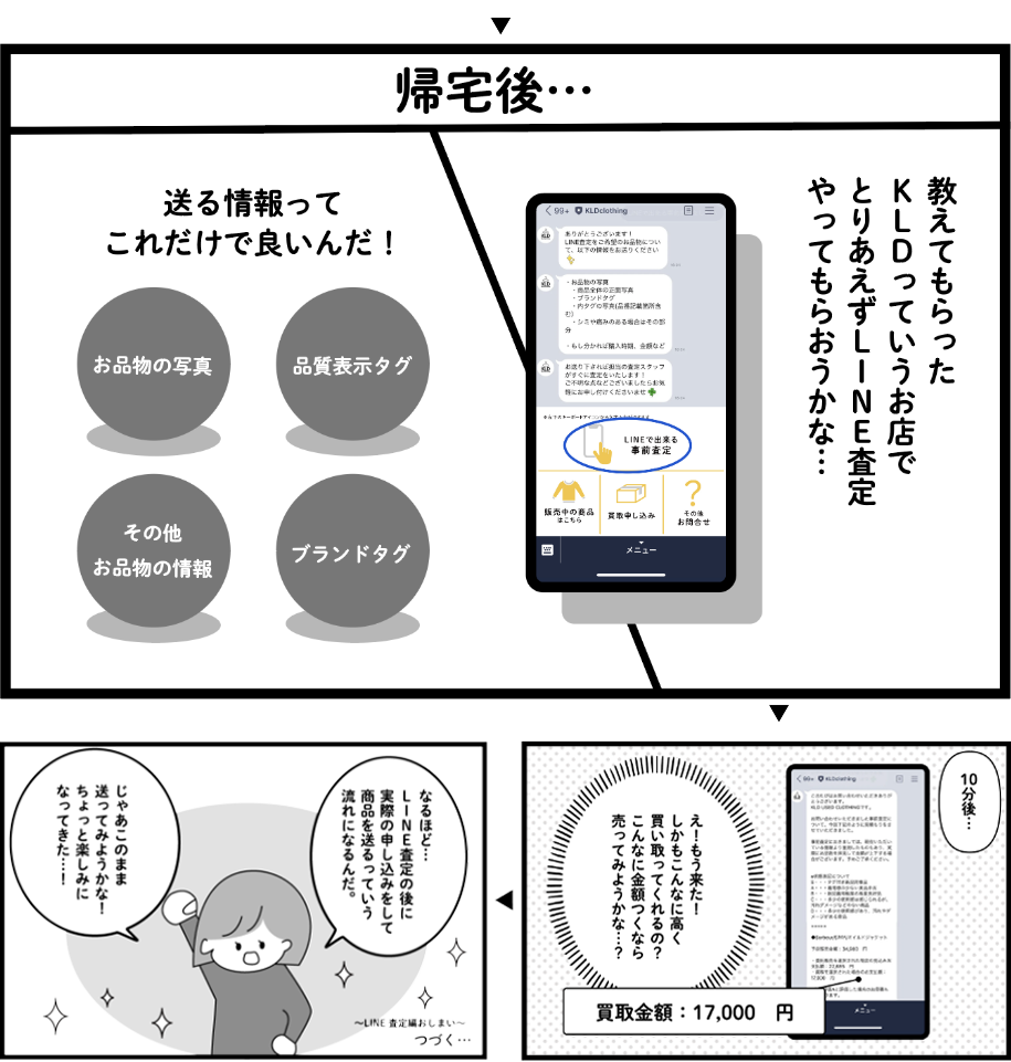 曖昧な査定額では実際の買取を使いたい!とはなかなか思えないですよね?KLDでは、LINE査定であっても実際のお買取と同じようにはっきりした査定額をお伝えします。